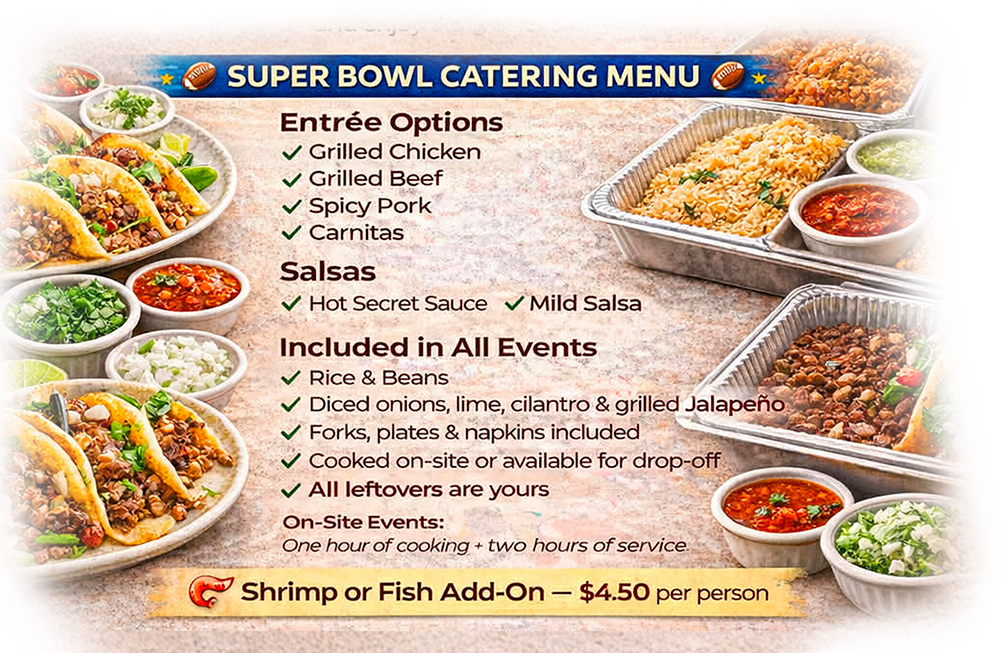 When you need honest, dependable catering services in California, there’s only one name you need to know – Tako Bar Catering. We pride ourselves on the freshness and authenticity of our meals. Whether you’re having a smaller gathering or a party with over 100 guests, we’re here to provide delicious food you’ll love.